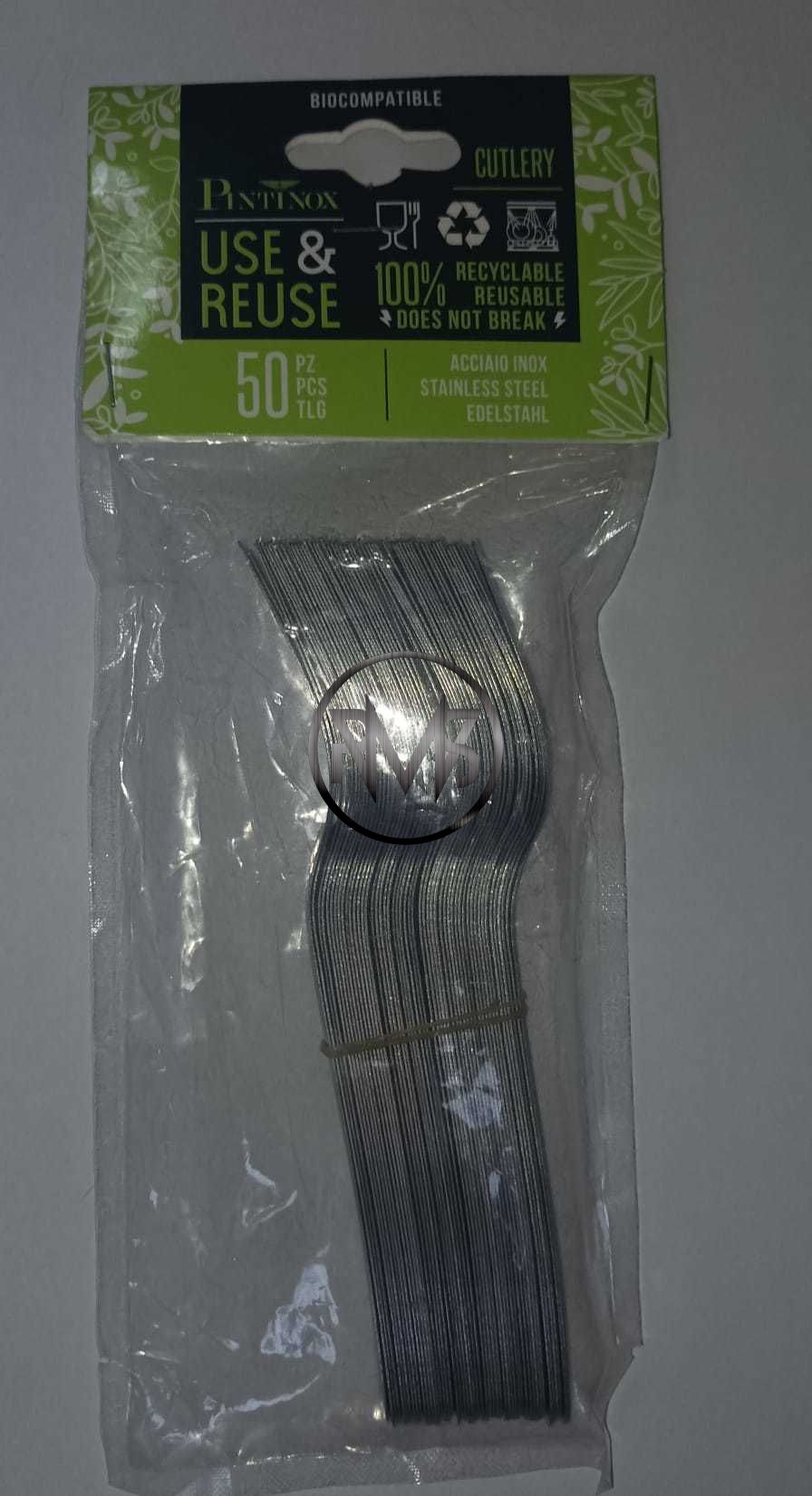 Sáčok 50 kusov vidličiek o dĺžke 16 cm z nehrdzavejúcej oceli.