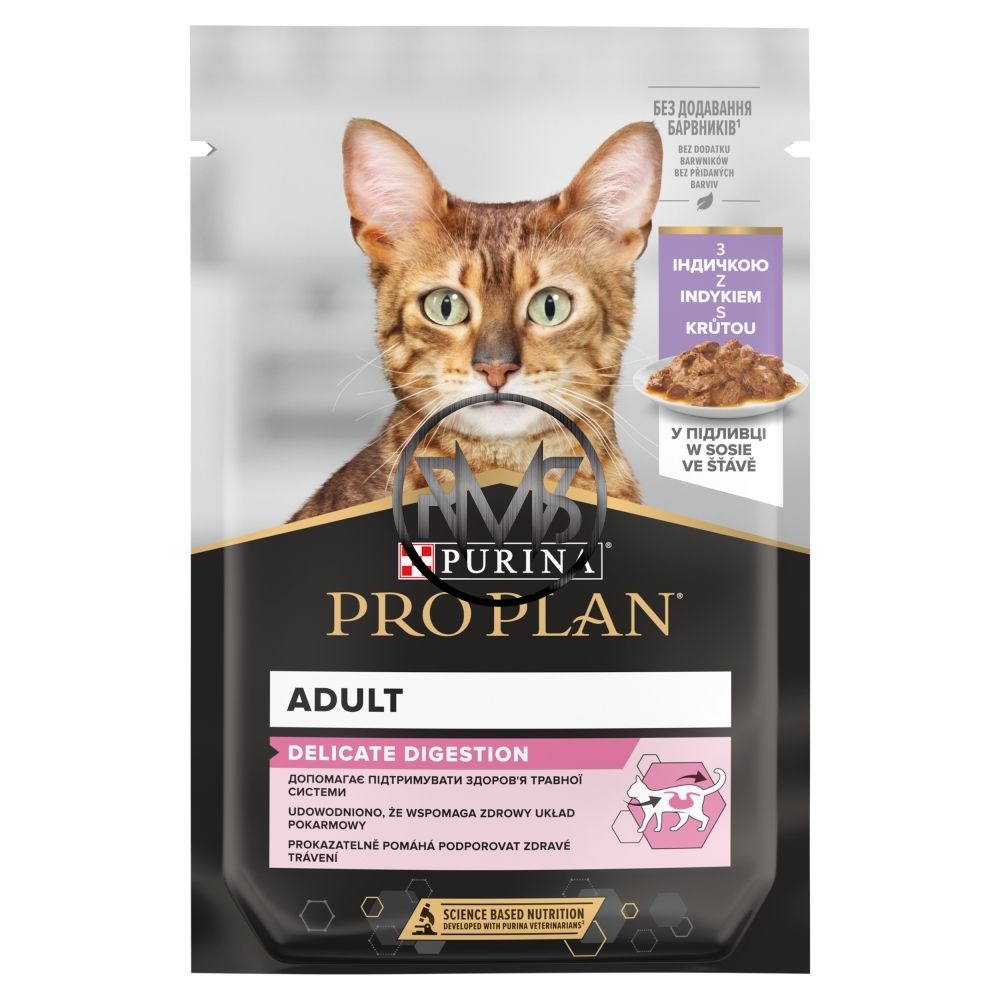 PURINA® PRO PLAN® Adult Delicate Digestion s morkou v šťave preukázateľne pomáha podporovať dobré trávenie a pomáha zvládať citlivú kožu vďaka vysokému obsahu omega-3 a 6 mastných kyselín.